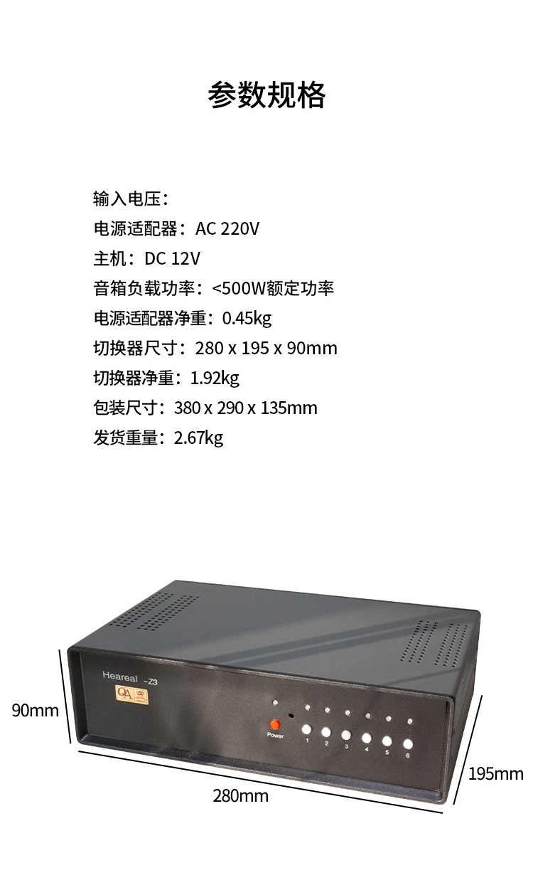 欢聆HearealQ2 功放音箱2入2出切换器控制 功放喇叭選擇器2进2出无损
