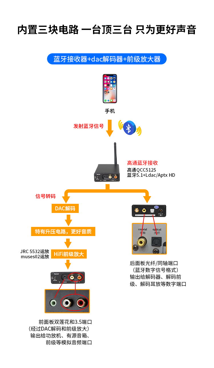 欢聆L3-A hifi蓝牙接收放大器无线音频 无损转功放光纤同轴蓝牙5.1aptx适配