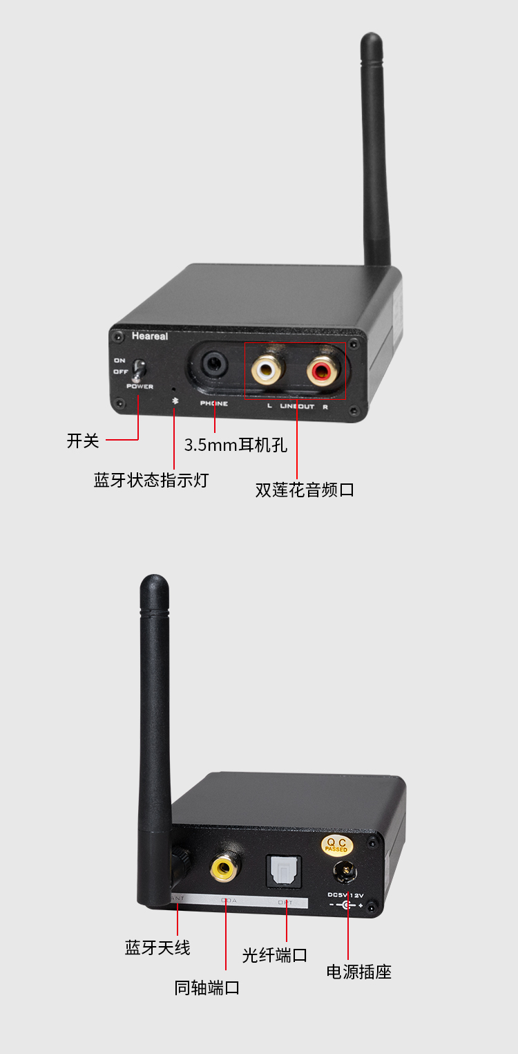 欢聆L1 蓝牙接收解码器5.1无线音频适配器无损ldac功放音响转蓝牙接收器