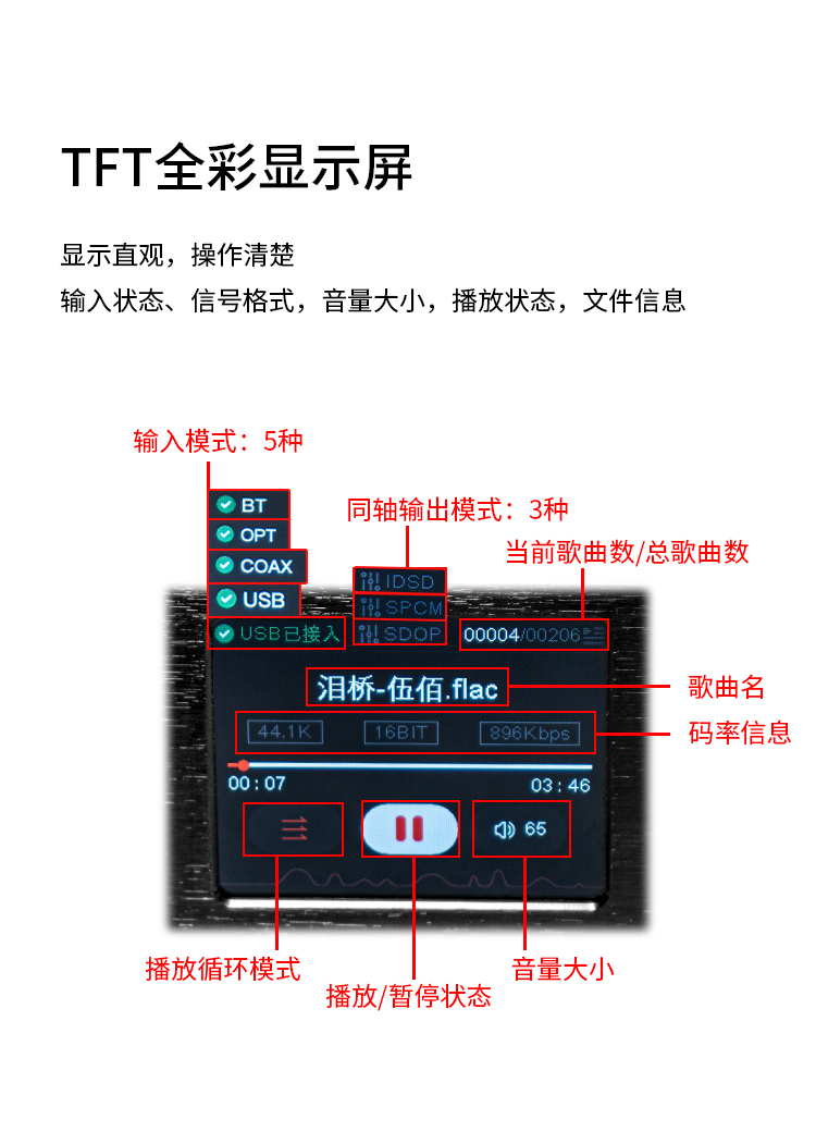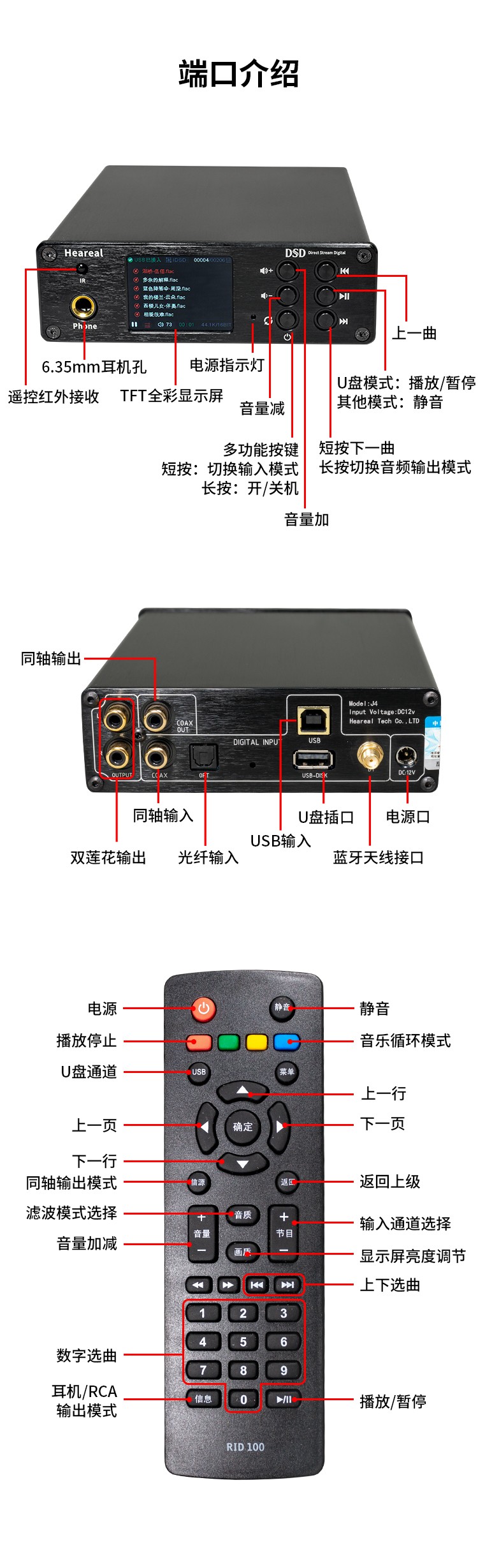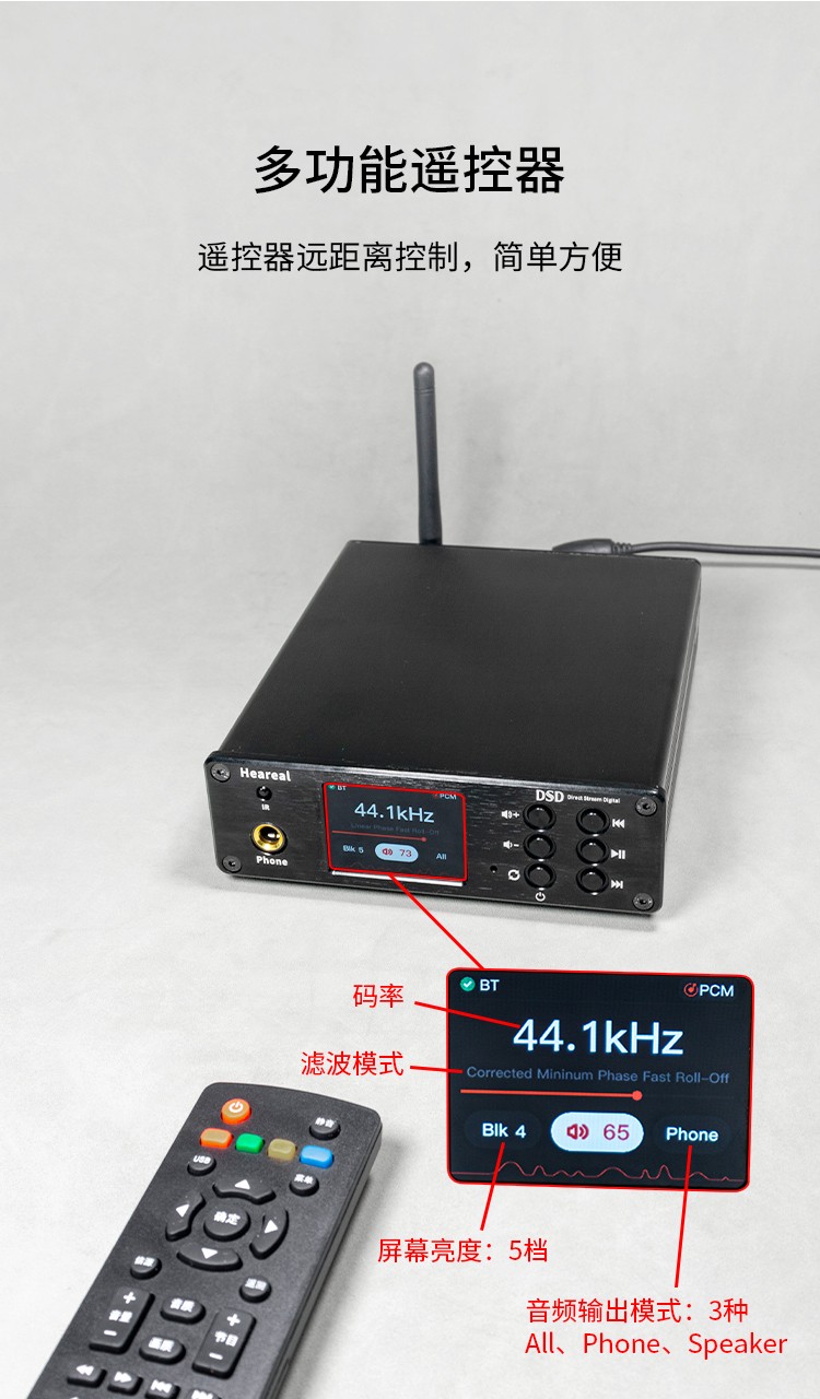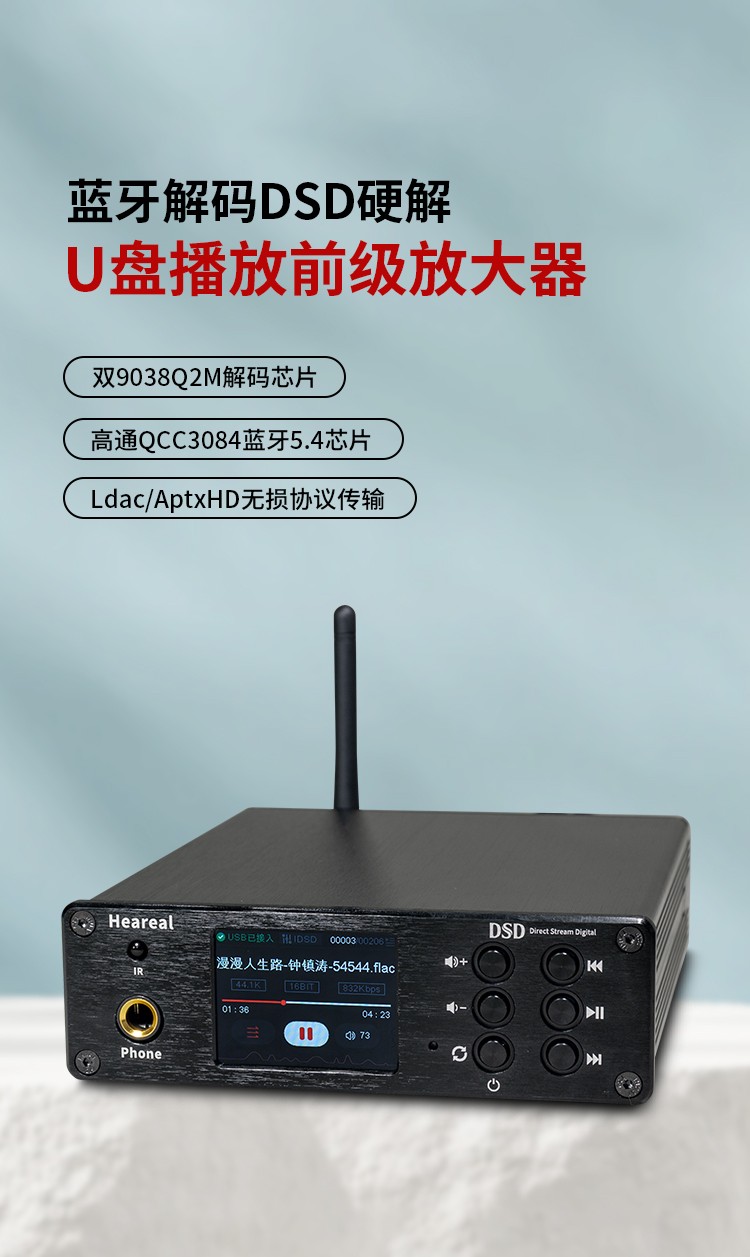 欢聆J4 发烧蓝牙接收解码器移动硬u盘播放显示屏双9038电脑同轴dac耳放